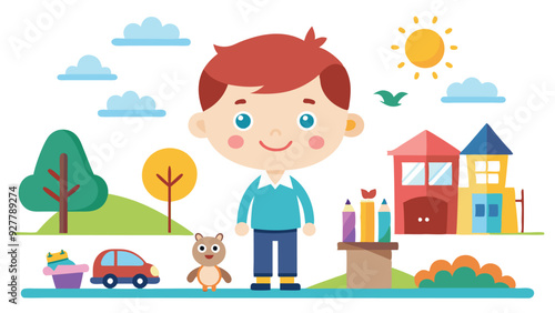 little boy with his pet toys