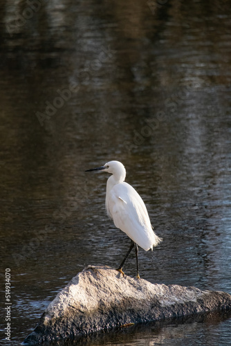 Little egret, Egretta garzetta, small white heron with a black beak.