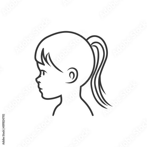 little girl head minimalist line art icon logo symbol
