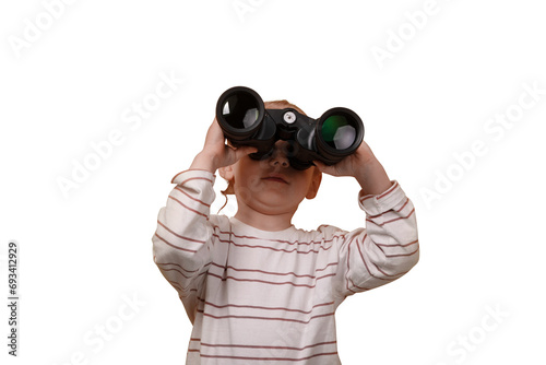 little girl looking through binoculars isolated on a transparent background