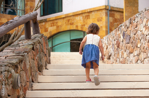 little girl walking up the stairs