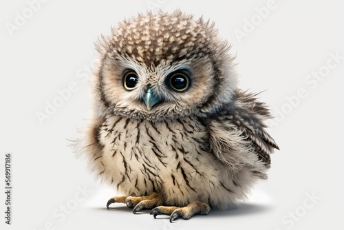 Little Owl, Athene noctua, standing in front of a white background