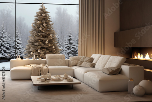 living room with christmas tree