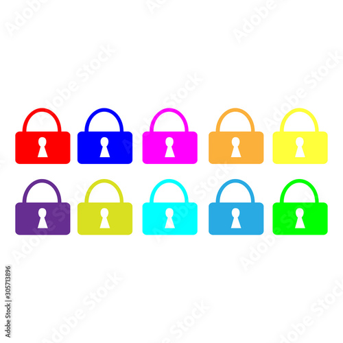Lock icon in flat style. lock closed. Concept password, blocking, security. Lock symbol isolated colored backgroun
