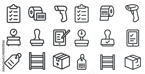 Logistics and warehouse filled icons set – solid, inventory, shipping symbols