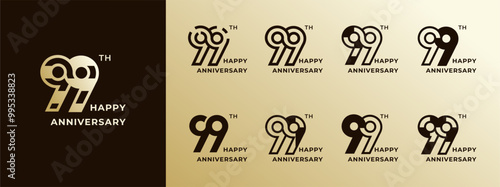 Logo 99th, years happy anniversary gold, Creative design template for celebration, birthday, greeting and invitation. Editable file