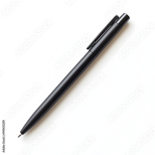 Lone Black Ballpoint Pen Resting on Bright White Minimalist Plane