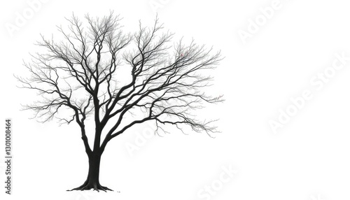 Lone deciduous tree, stark branches against pure white, white background, background