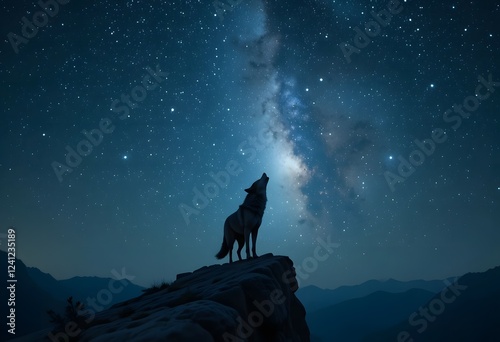 Lone Wolf Howling Under the Milky Way Galaxy at Night