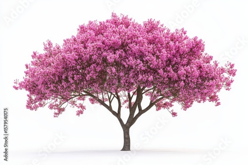 Lonely pink trumpet tree against a white backdrop