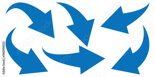 Long arrows icon. Long curved hand drawn blue arrow icon isolated on white background.