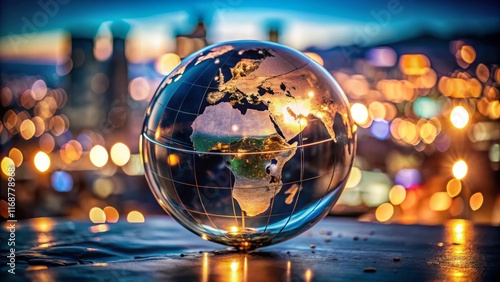 Long Exposure Photo of a Globe World Map with Glowing City Lights