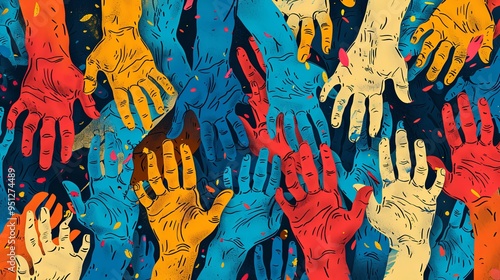 Long hands seamless pattern. Funny multicolor human arms, repeated curved intertwining limbs, different gestures, contemporary fabric print. Wrapping, wallpaper design tidy vector background