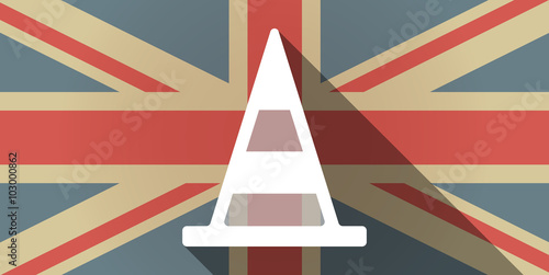 Long shadow UK flag icon with a road cone