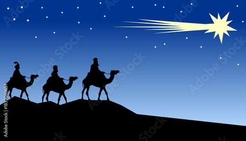 Los tres Reyes Magos siguiendo la estrella de la Navidad