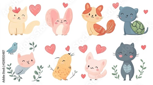 Love birds in a heart, Valentine’s Day collection, isolated on white background.