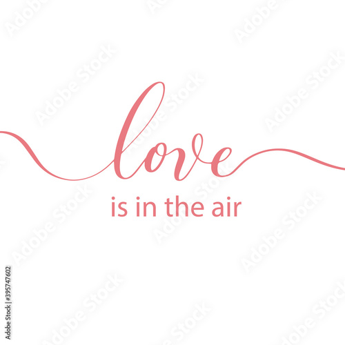 Love is in the air vector hand lettering inscription isolated on white background. Valentine's Day typography.
