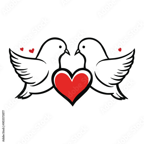 Lovebirds with Heart Romantic Illustration for Valentines Day
