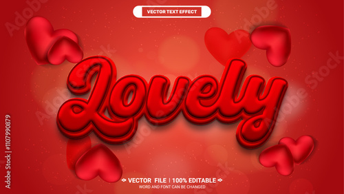 Lovely glowing red color 3d editable vector text style effect with love background