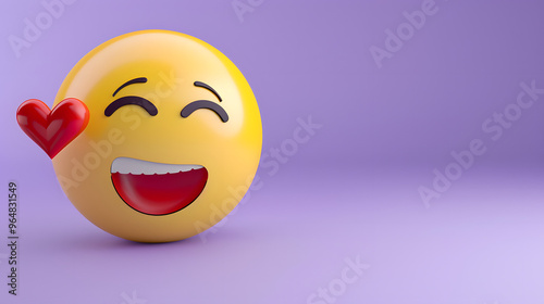 Loving eyes and mouth emoji expression on purple background