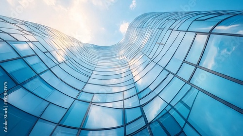 Low angle view of futuristic architecture, Skyscraper of office building with curve glass window