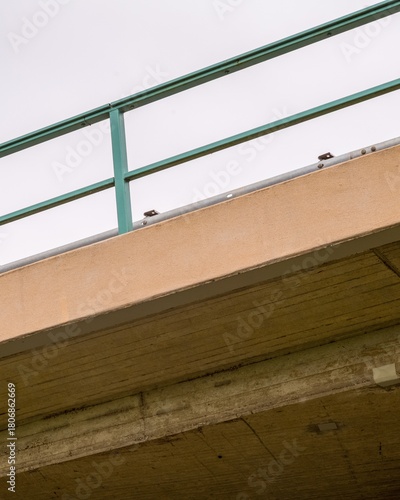 Low angle view of overpass with green metal railing