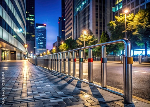 Low Light Security Barrier at Night, Urban Landscape with Shadows and Dim Lighting, Safety Features Highlighted, Modern Design, Night Photography, City Security, Protective Measures
