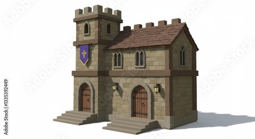 Low-Poly 3D Render of Medieval Building with Two Doors