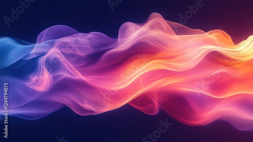 Luminous flowing shapes. Bright gradients in coral and indigo. Dynamic curves merging into abstract designs.