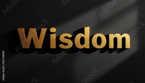 Luminous golden letters spelling 'Wisdom' casting shadows on a dark background