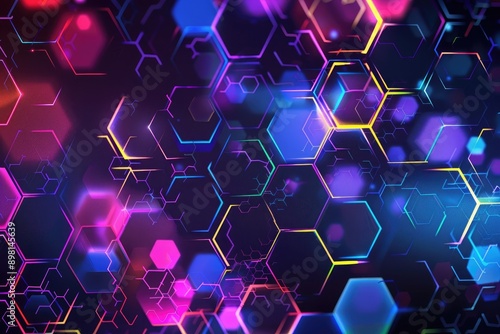 Luminous hexagon background, Geometric design featuring purple and pink hexagons, AI generated