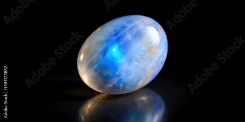 Luminous moonstone gemstone on a dark black background with subtle shine and reflective properties, luxury, celestial