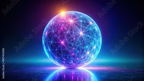 Luminous sphere emitting blue and purple light on a dark background, luminous, sphere, blue, purple, light, dark