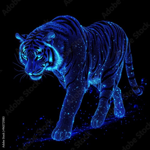 Luminous Tiger Silhouette: 8K UHD Frostbite Artwork with Tenebrism Mastery