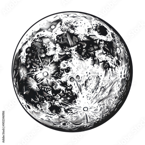 Lunar Surface: A detailed illustration captures the moon's cratered terrain. showcasing the beauty of space.