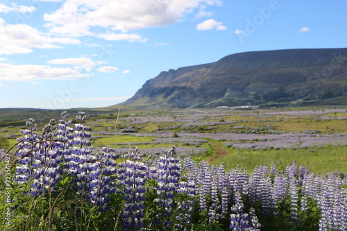 Lupinen Blumenfeld an Bergen Island Panorama Landschaft