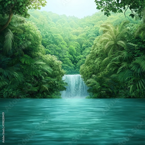 Lush Forest Waterfall in Vibrant Green Landscape