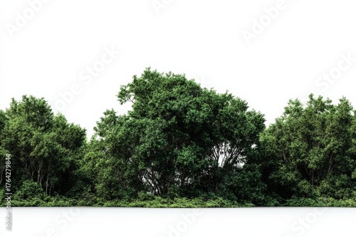 Lush green forest trees isolated on white background nature greenery vegetation plant life foliage outdoor scenery natural environment fresh vibrant eco-friendly landscape
