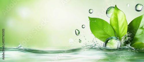 Lush green leaves with water droplets, creating a serene and refreshing nature scene.