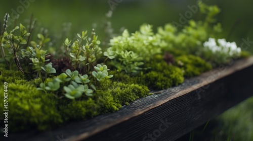 Lush green moss with vibrant small plants