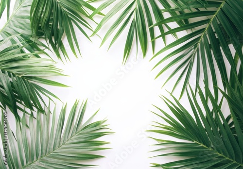 Lush Green Palm Leaves Forming a Natural Frame on a White Background Ideal for Tropical Themes and Summer Decoration Concepts