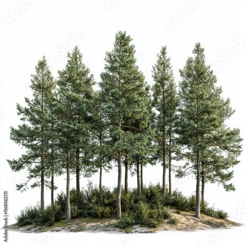 Lush Green Pine Forest Scene with Tall Conifers and Underbrush in Natural Habitat