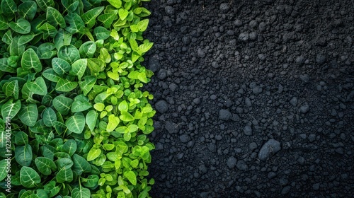 Lush Green Plants Bordering Dark Soil in a Natural Setting, Ideal for Gardening or Landscaping Use