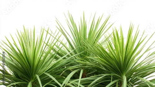 Lush Green Tropical Plants with Long Thin Leaves on White Background