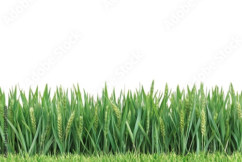 Lush green wheat field under clear sky