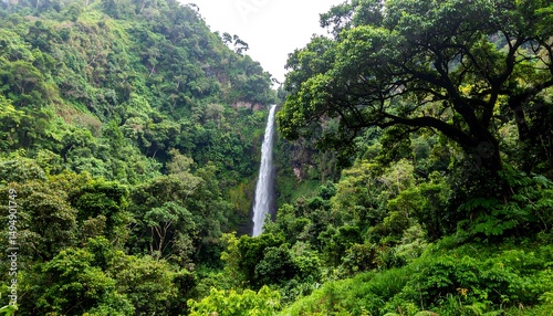 Lush Rainforest Waterfall Hidden Jungle Paradise.