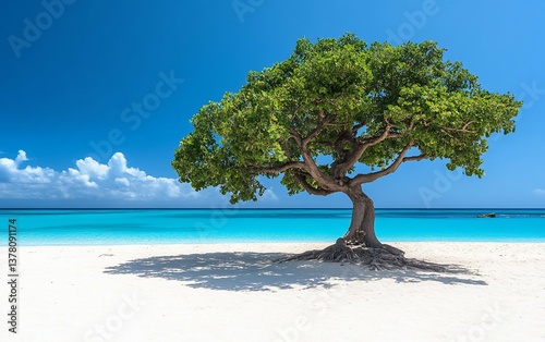Lush Tree on Pristine Caribbean Beach
