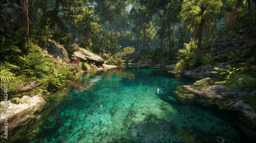 Lush Tropical Cenote: Crystal Clear Water, Jungle Paradise, Serenity