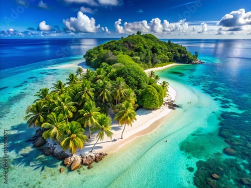 Lush Tropical Island Paradise: Aerial View of Pristine Beaches and Turquoise Waters