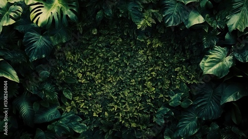 Lush tropical plants wall, nature background, ideal for wallpaper or decor